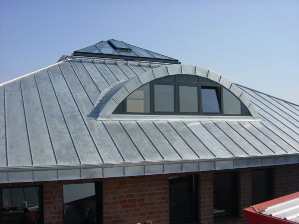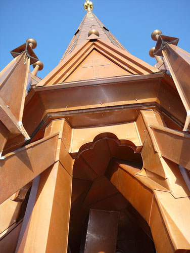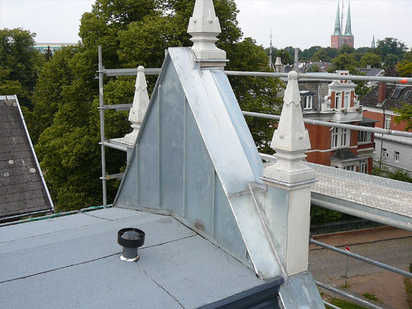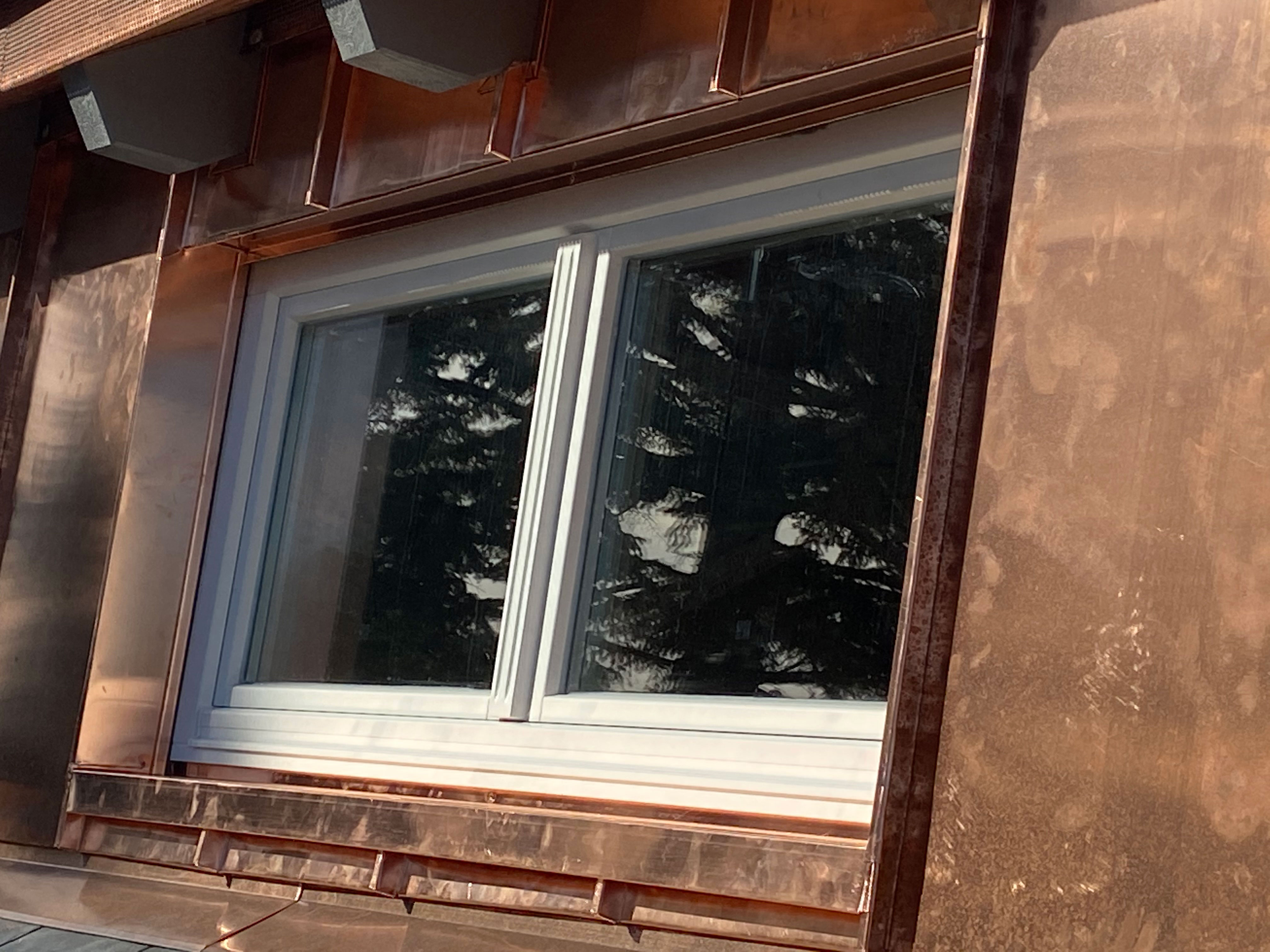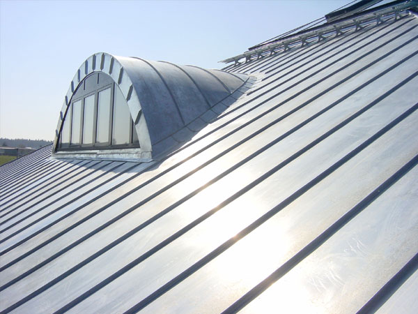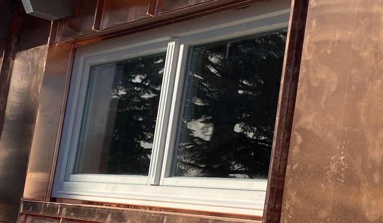Eingangsportal mit Kupfer in Stehfalztechnik verkleidet.