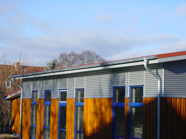 Wellblechen der Kita der ev. Kirche in Ratzeburg.