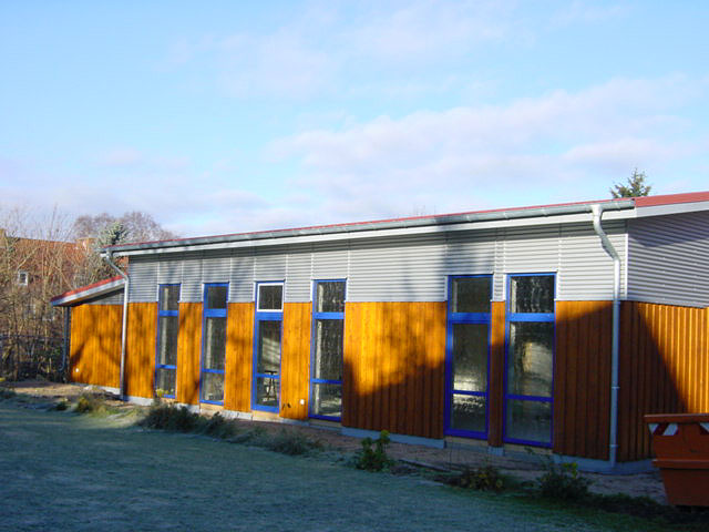 Wellblechen der Kita der ev. Kirche in Ratzeburg.
