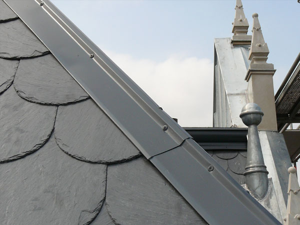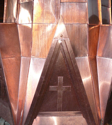 Eingangsportal mit Kupfer in Stehfalztechnik verkleidet.