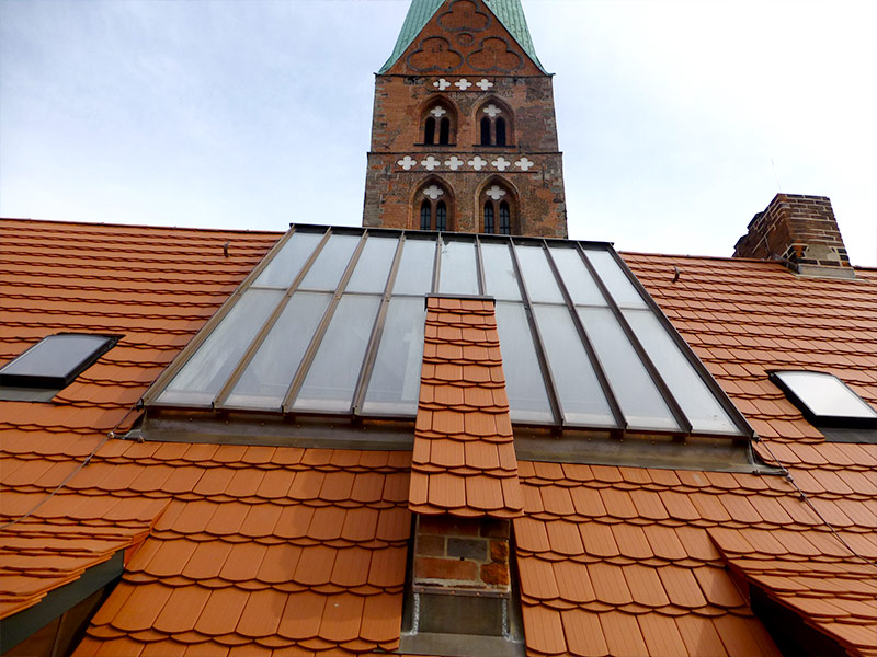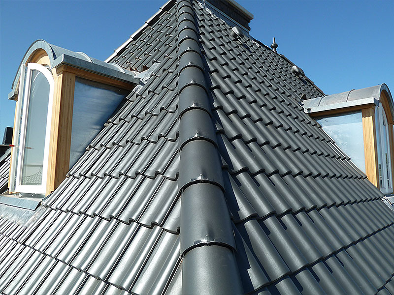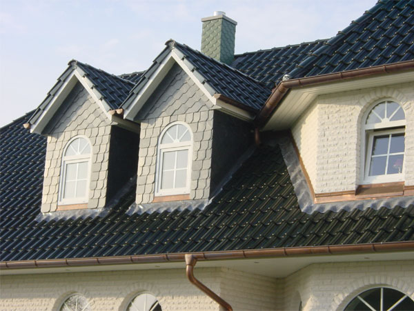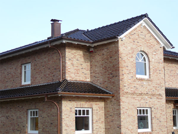 Eindeckung mit glasierten Meyer-Holsen Hohlfalzziegeln