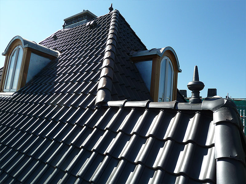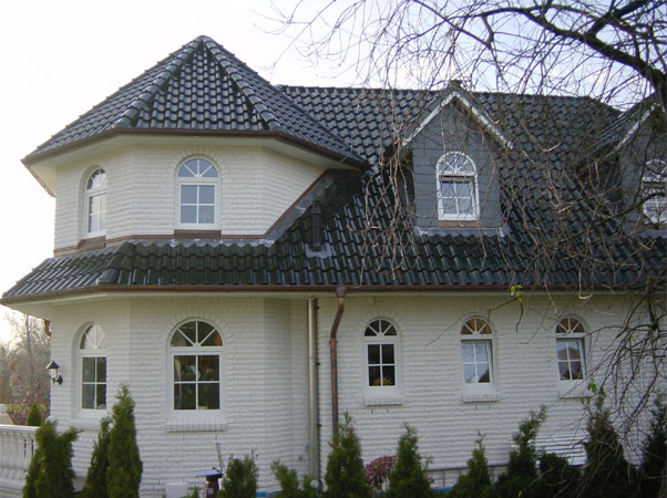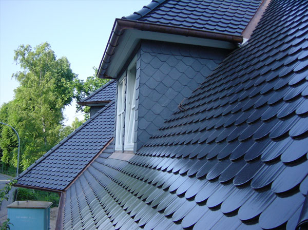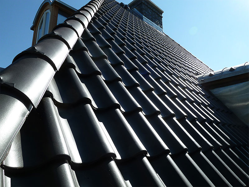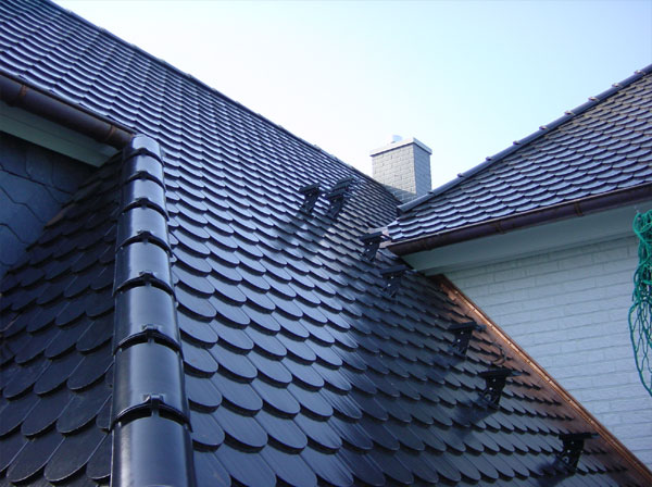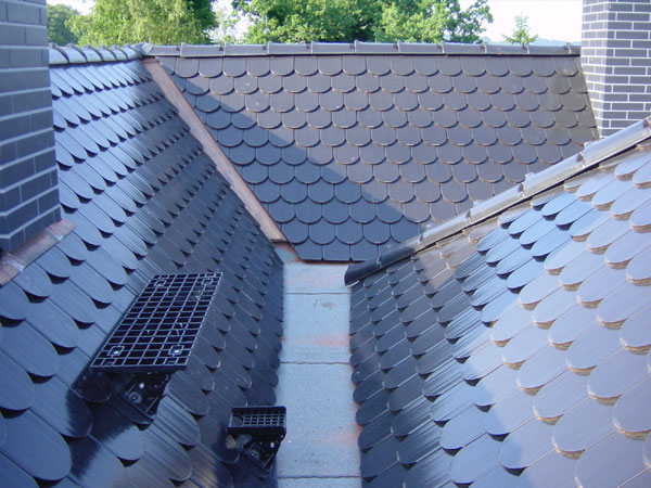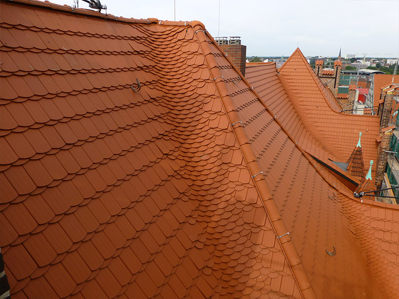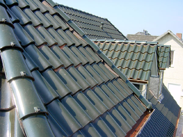 Dacheindeckung mit glasierten Röben Dachziegeln